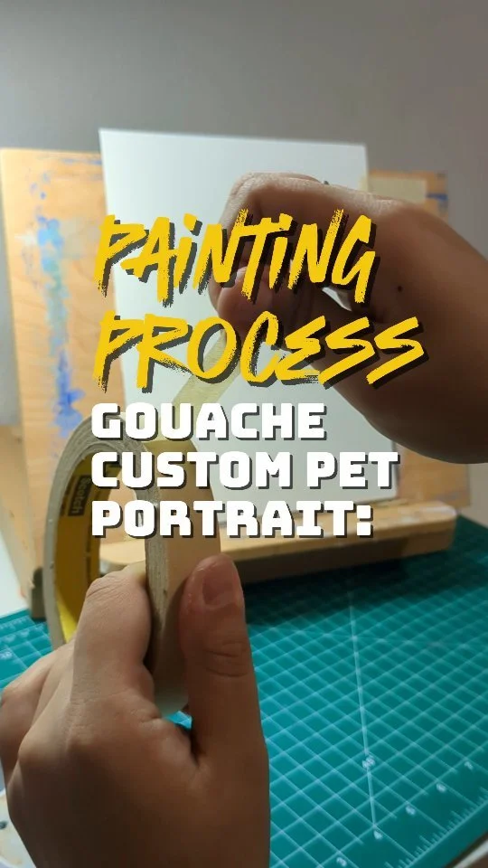 I create each portrait using gouache, a vibrant and richly layered medium that captures your pet’s unique personality. I use Winsor & Newton gouache paints on 140 lb (300gsm) cold press watercolor paper for a high-quality, textured finish.