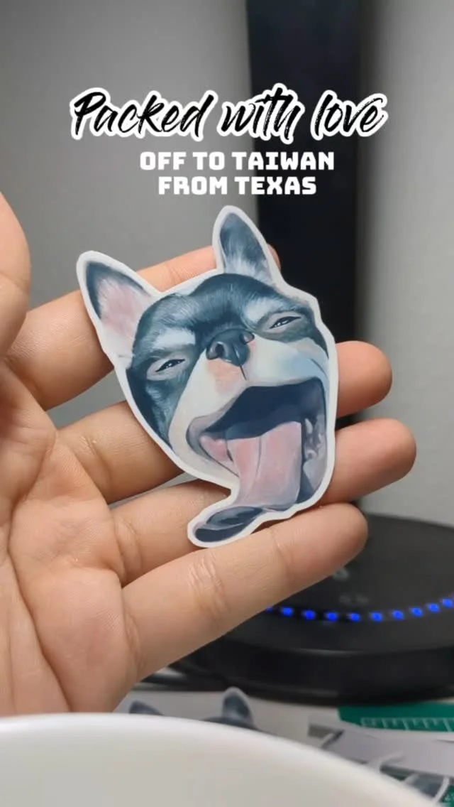 When you add your custom pet portrait to your cart, a permission window will pop up with 3 options. To receive 2 complimentary waterproof stickers, select the option that allows YiFang Studio to feature your pet’s portrait in both marketing and future products. These stickers will be included with your order!